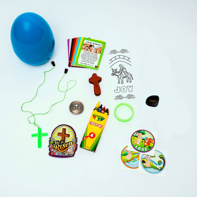 *** IMPORTANT ORDERING NOTE ****: To order additional eggs and daily fillers please purchase these separately. The main set comes with one egg and filler set already. We recommend ordering one set per household and an additional Holy Week egg filler set per additional child. So...if you have 2 kiddos, order one set and one additional filler set, so they will each have an egg. Be sure to specify your color by clicking the box above!