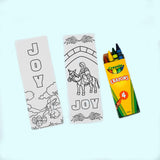 Coloring with joy! The coloring bookmark and crayons are a simple,fun activity for kids to color their own bookmark. Use it to mark your place in the book each day.